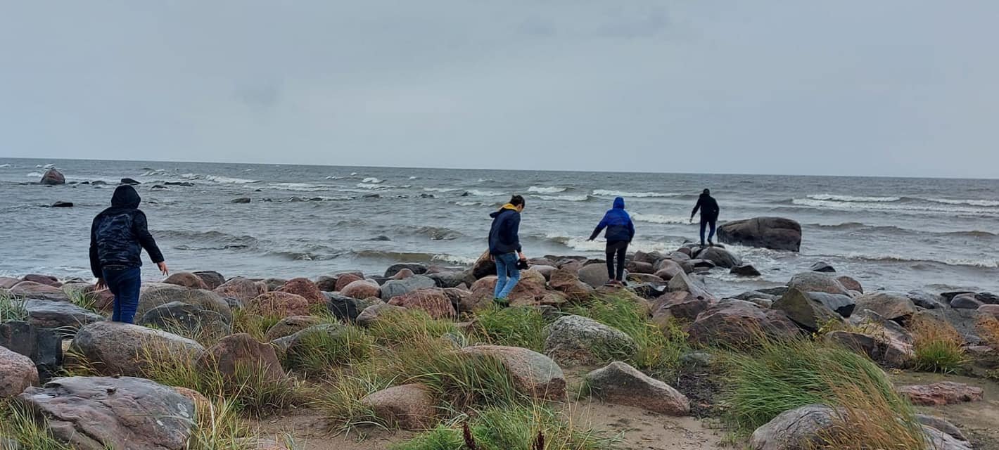 Braucot uz Kolku pa ceļam apmeklējām Mērsraga bāku un vērojām, cik dažāds ir krasts - vietām akmeņains, vietām baltās smiltis, vietām zāle kā pie ezera.