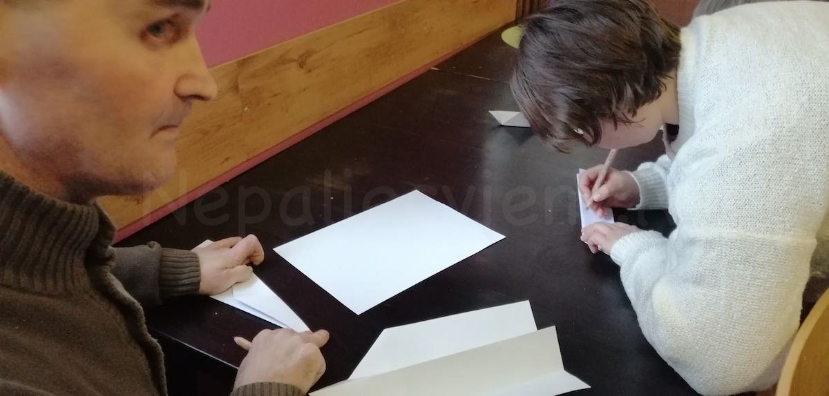 Klātesošie naski ķērās pie papīra, lai izveidotu savu ziņnesi un domāt vēlējumus. Lai rosinātu možāku un jestrāku gaisotni mūziķis Aivars Lapšāns spēlēja pazīstamu melodiju akordus. Aktivitātē piedalījās arī tie, kuriem bija pat grūti paņemt pirkstos papīru, taču viņiem mēs palīdzējām kopā ar SAC darbiniekiem.